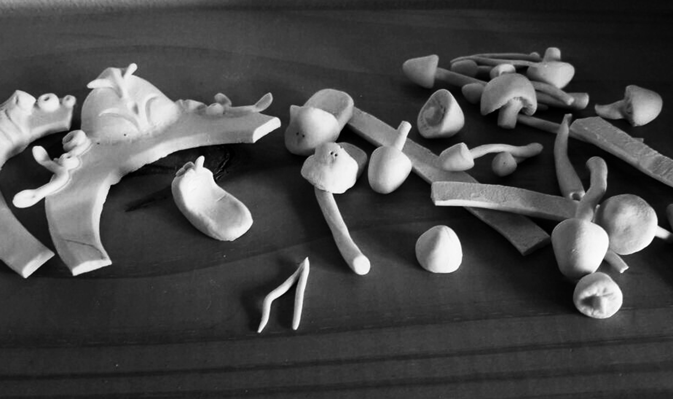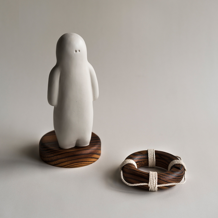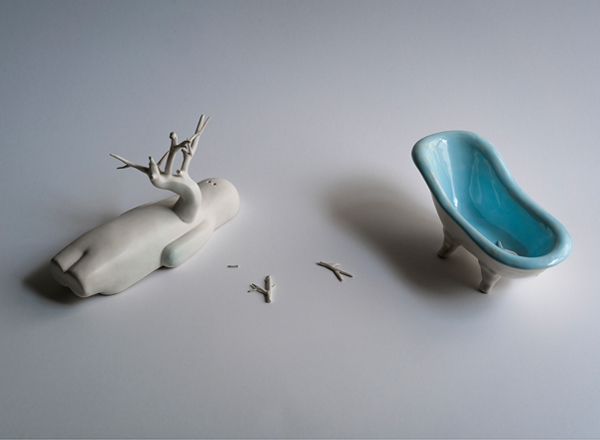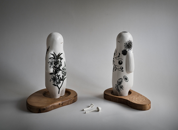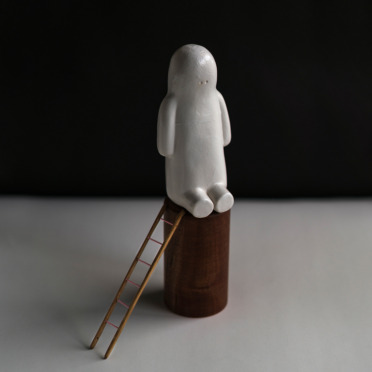 2016. Cerámica de baja esmaltada, base de madera de roble colorado y escalera de pinotea.