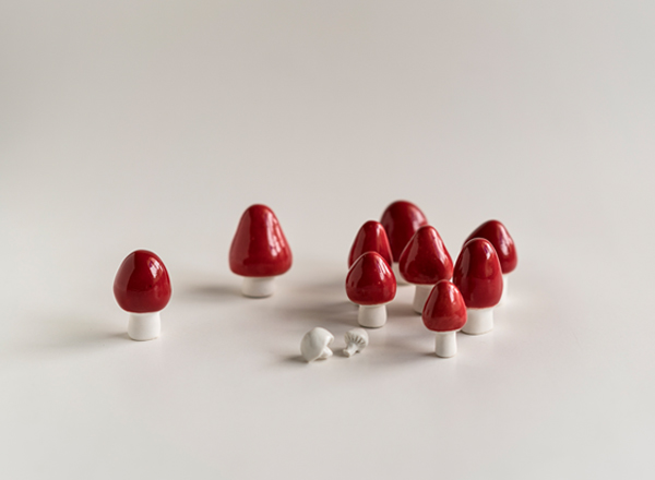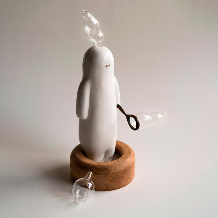 2016. Cerámica de baja esmaltada con vidrio soplado.