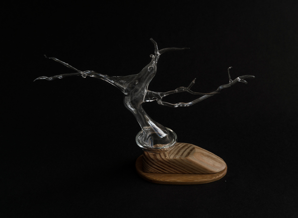 2016. Cerámica de baja esmaltada con vidrio soplado.