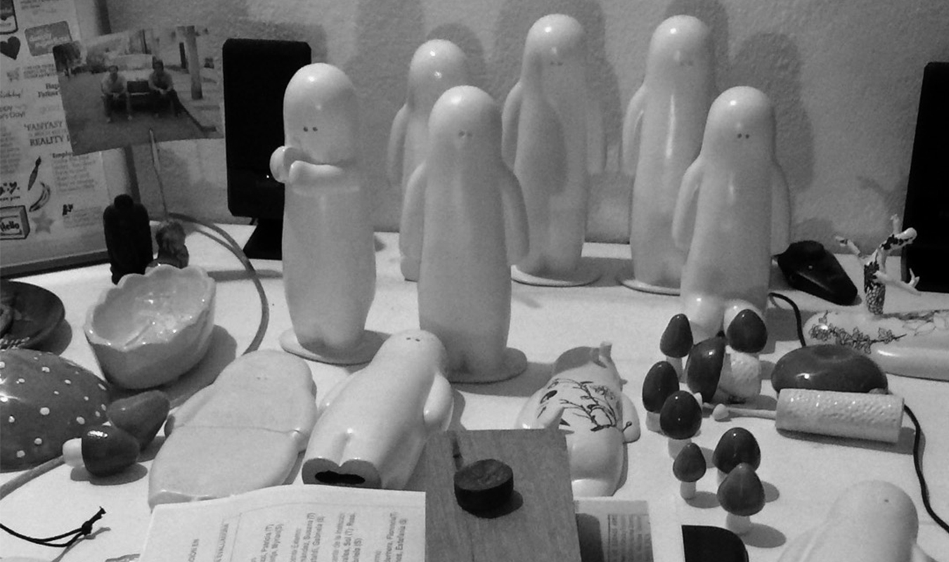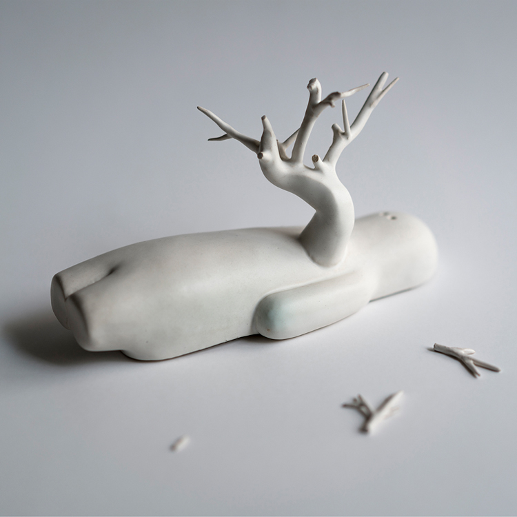 2016. Cerámica de baja esmaltada, base de madera de roble colorado y escalera de pinotea.